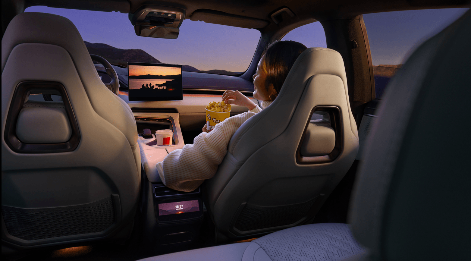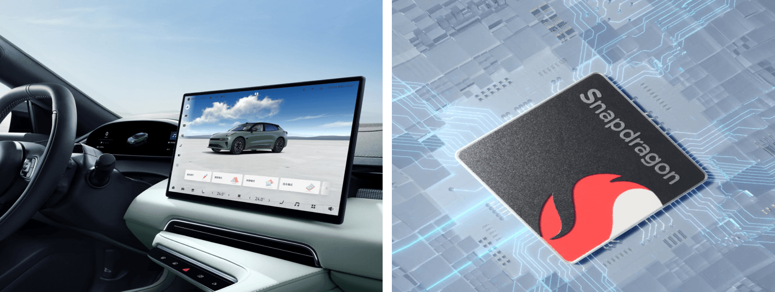 - Màn hình giải trí cảm ứng trung tâm, sử dụng tấm nền Oled độ phân giải cao có kích thước 15.4 inch, đồng sử dụng con chip Snapdragon 8295 sản xuất trên tiến trình 5 nm đem lại tác vụ giải trí và tương tác tính năng của xe một cách mượt mà và chính xác